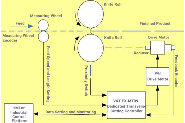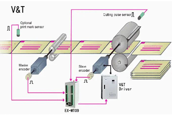 The EX-MT09 is a dedicated flying shear controller designed for corrugated board cross-cutting applications. When paired with the V&T V6-H high-performance vector drive, it enables precise flying shear control. The EX-MT09 utilizes a high-performance DSP chip from Texas Instruments (TI), offering fast computation speed, built-in flying shear control algorithms, high-speed communication capabilities, high cutting accuracy, strong expandability, and convenient system upgrades.