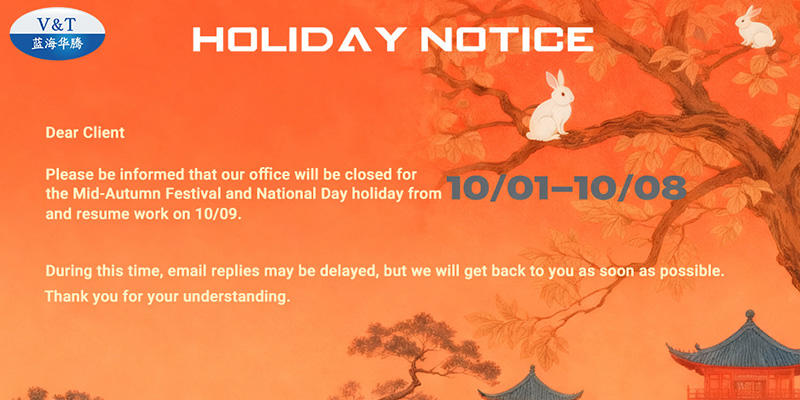 Please be advised that our company will be closed from October 1st to October 8th, 2025 in observance of two important Chinese festivals: